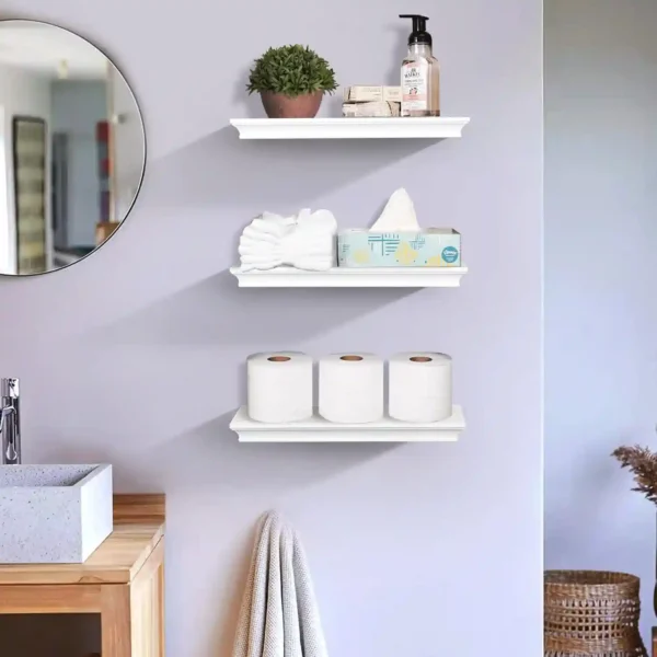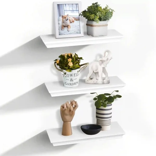 Add timeless elegance and functionality to your walls with the AHDECOR White Floating Shelves. Designed with invisible brackets and a crown molding finish, these shelves bring both style and practicality to any space—be it your bedroom, bathroom, living room, or kitchen. Perfect for displaying décor, storing essentials, or organizing daily items in a sleek way.