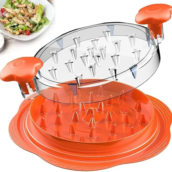 Large Chicken Shredder Tool – Twist, Shred & Serve with Brush & Fork (Orange)
