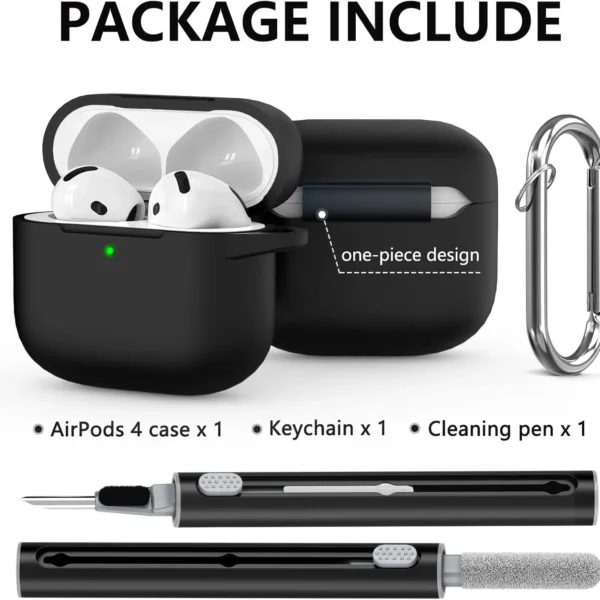Protect and personalize your AirPods 4 with this soft silicone case cover. Designed for the 4th generation Apple AirPods, this case provides reliable protection against scratches, drops, and everyday wear while adding a stylish touch. The included cleaner kit helps keep your AirPods and case spotless for long-lasting use.