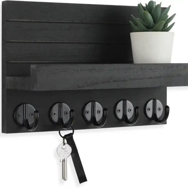 Stay organized in style with this decorative key and mail holder crafted from premium Paulownia wood. Featuring a built-in shelf, large hooks, and a compact wall-mounted design, it’s perfect for keeping keys, mail, bags, coats, and umbrellas neatly stored. With included mounting hardware, installation is quick and hassle-free. Measuring 9.8”W x 6.7”H x 4.2”D, it’s a practical yet elegant solution for entryways, kitchens, or offices.
