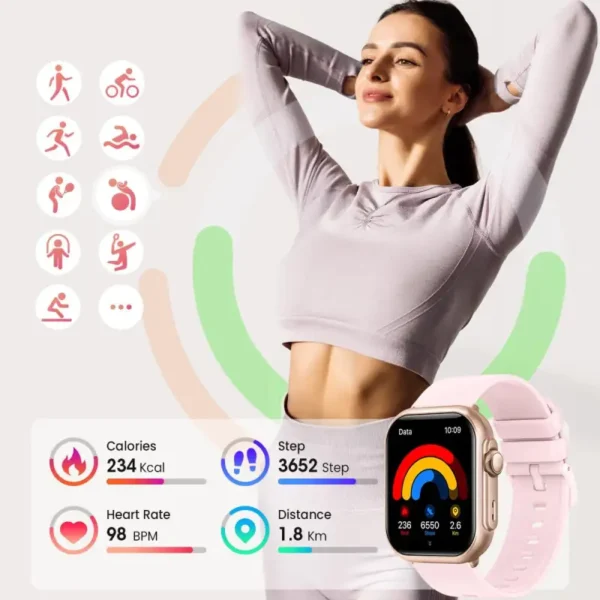 • 【300+ Customizable Dials – Express Yourself】Personalize your 1.85″ HD touchscreen with 300+ dynamic watch faces or upload your own photo. Ultra-clear display stays visible in sunlight, with adjustable brightness for night runs or office use.Reloj para Mujer Hombre that adapts to your style effortlessly